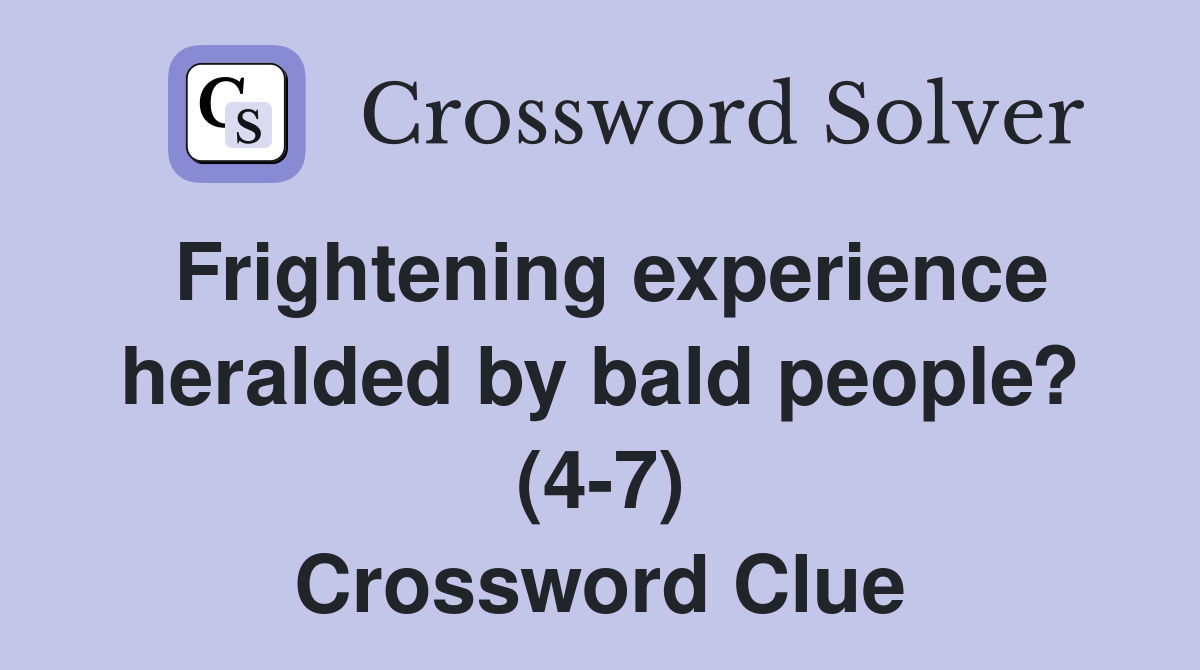 Frightening experience heralded by bald people? (4 7) Crossword Clue