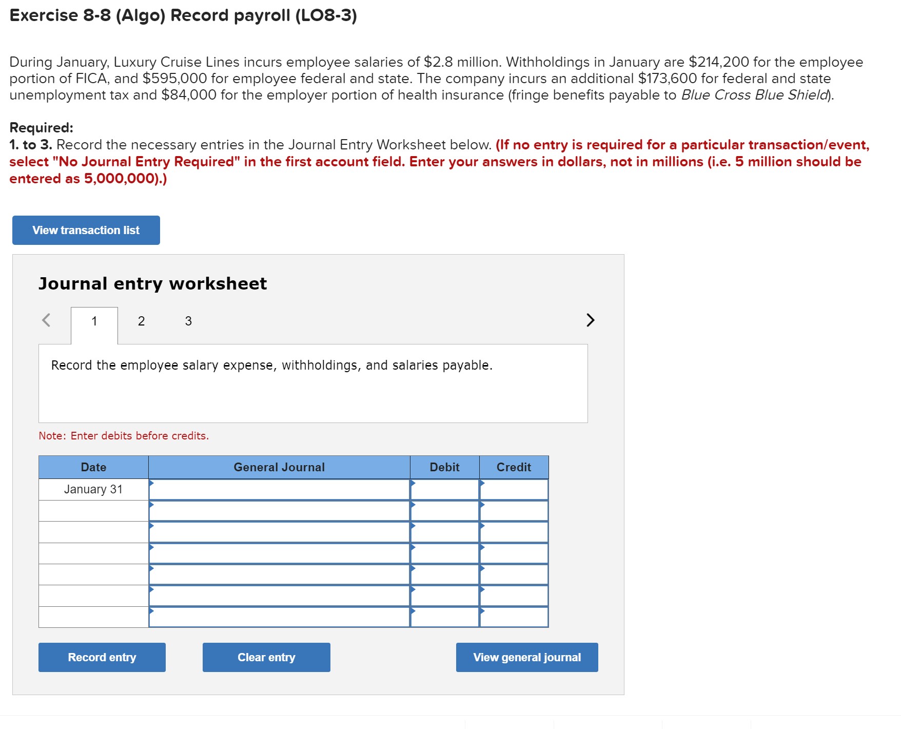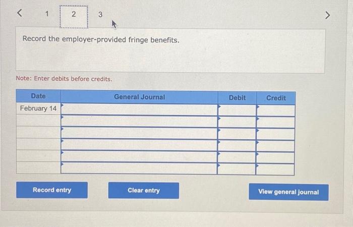 Solved Record the employer provided fringe benefits Note: Chegg com