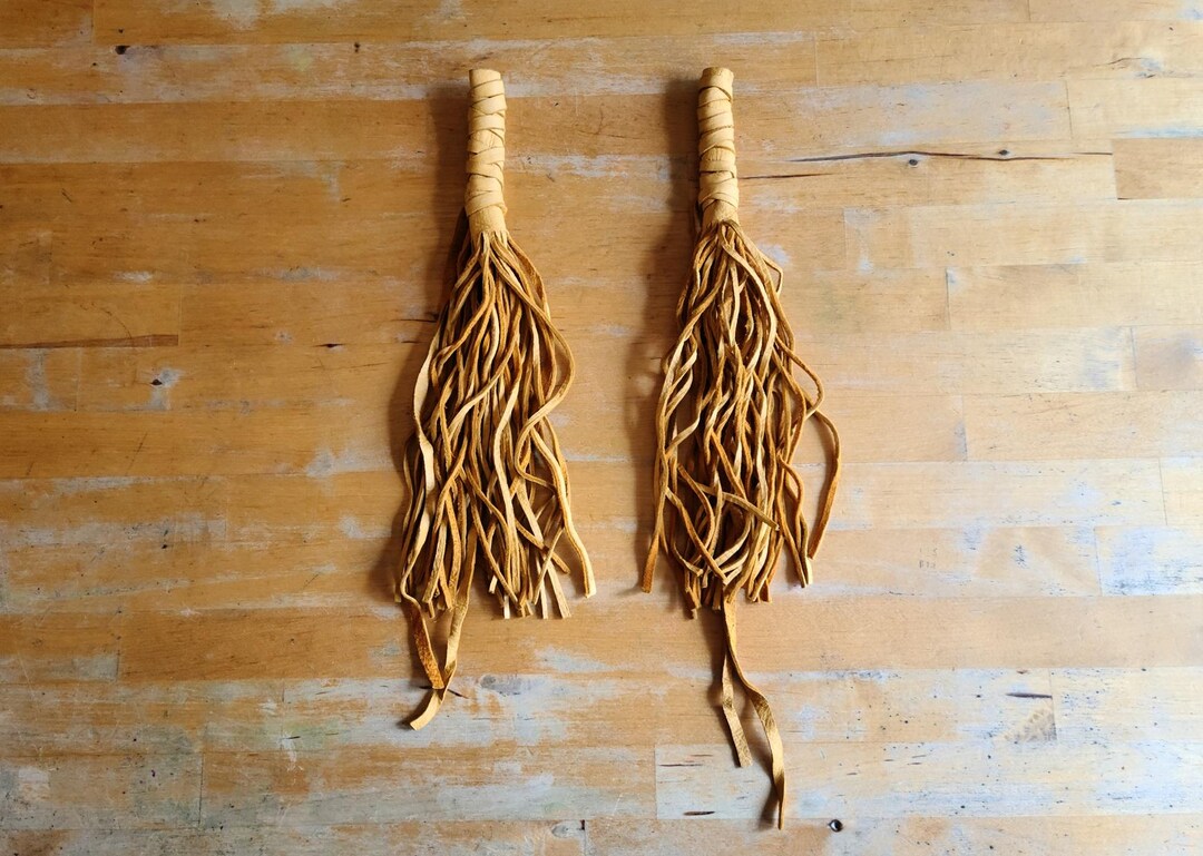 Vintage Native American Deerskin Hair Wraps Handmade Leather Buckskin