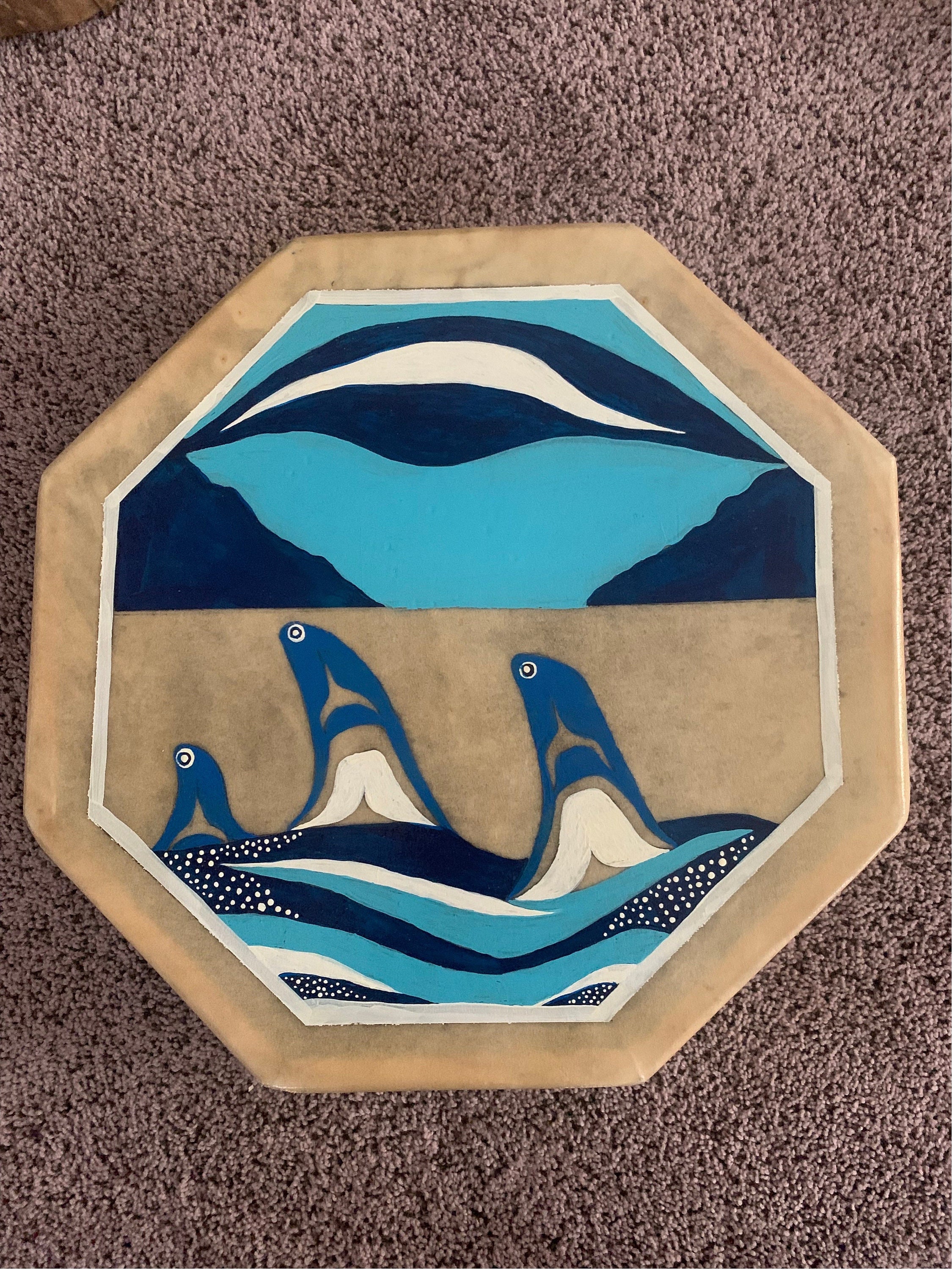 Hand Made Deerskin Hand Drum With Deer Antler Handle Killer Whales