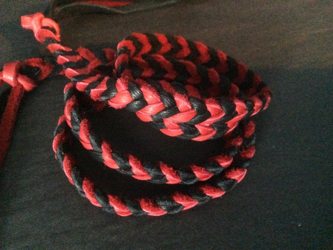 Red and Black Leather Hair Wrap With Fringe Deer Hide Braid Hair Tie
