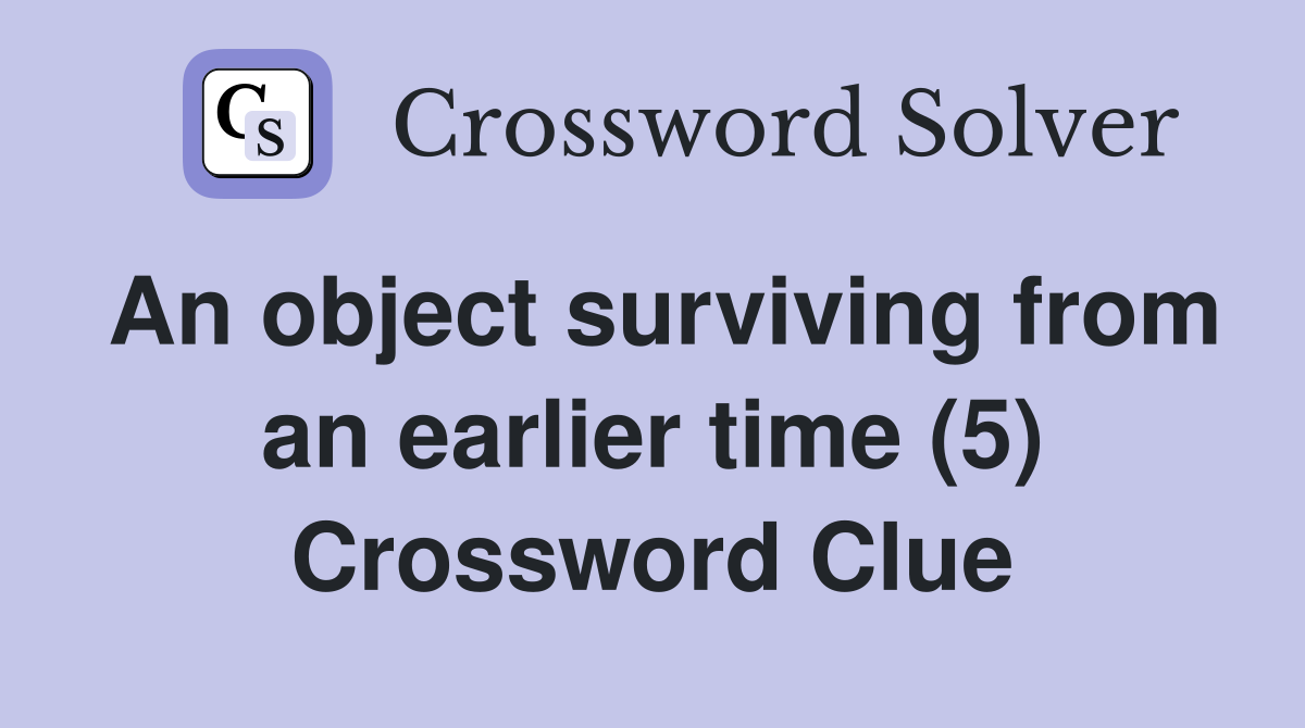 An object surviving from an earlier time (5) Crossword Clue Answers