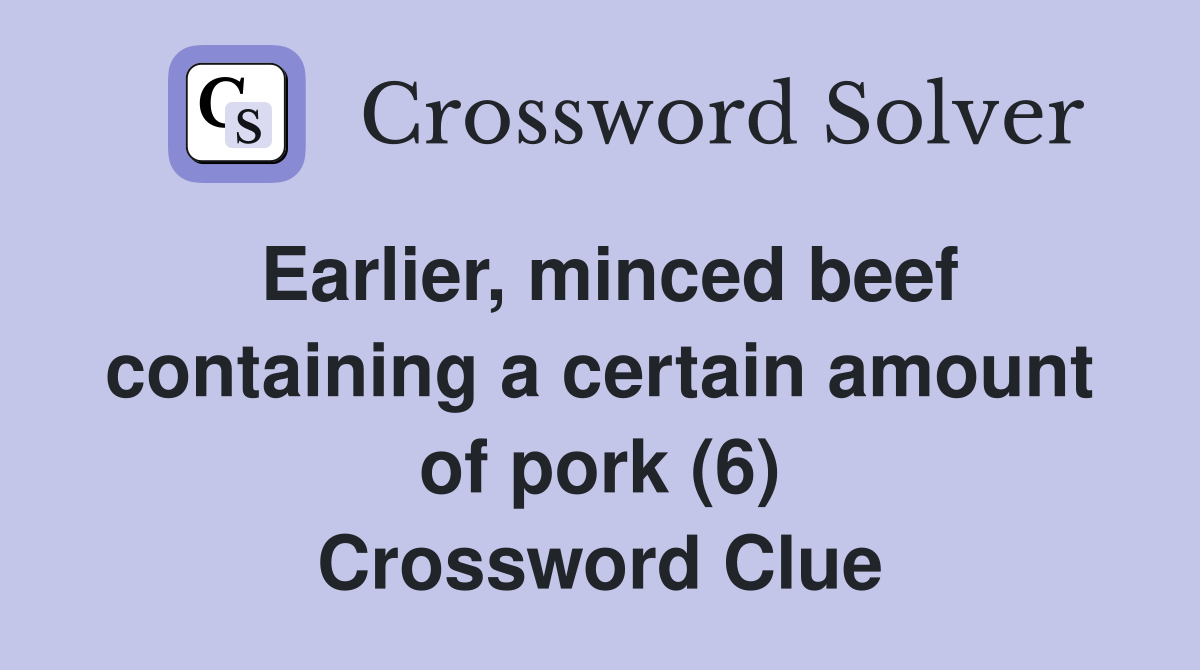 Earlier crossword clue TheSunCrosswordAnswers co uk