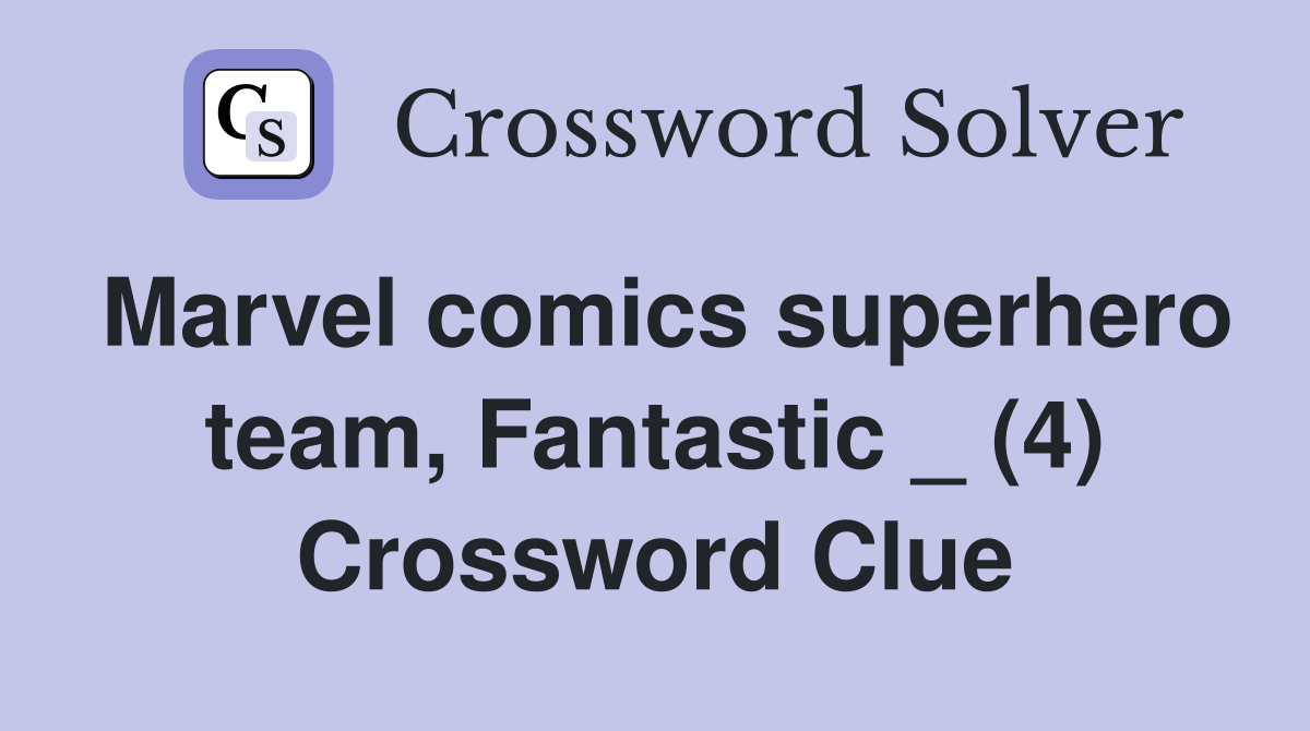 Marvel comics superhero team Fantastic (4) Crossword Clue Answers