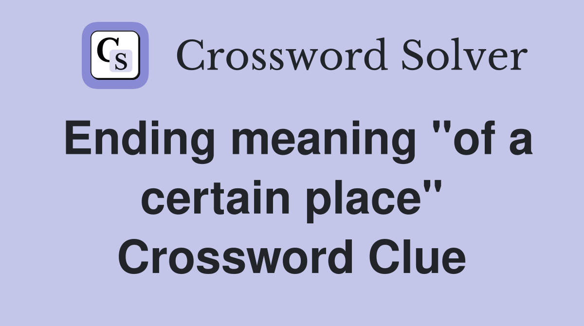 Ending meaning quot of a certain place quot Crossword Clue Answers