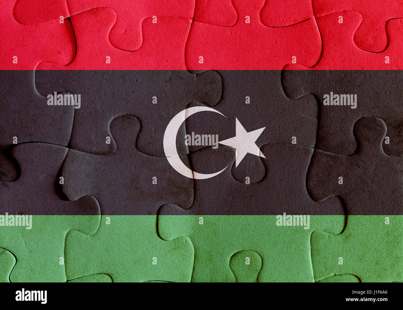 Illustration of a flag of Libya over some puzzle pieces Its a JPG