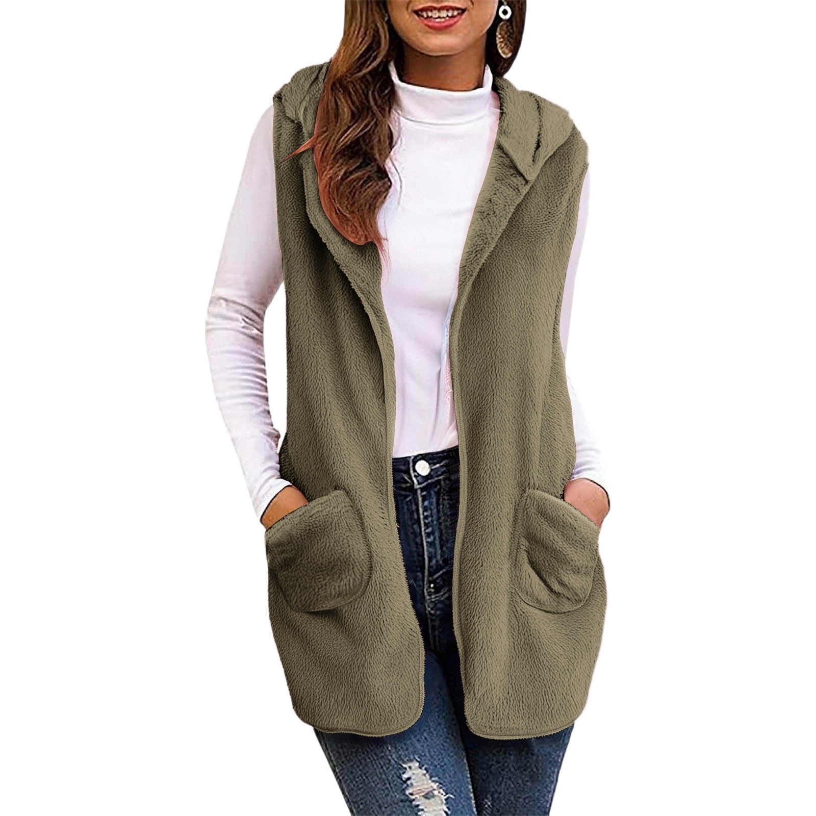 APEXFWDT Women #39 s Fuzzy Hooded Vest Fleece Sleeveless Open Front