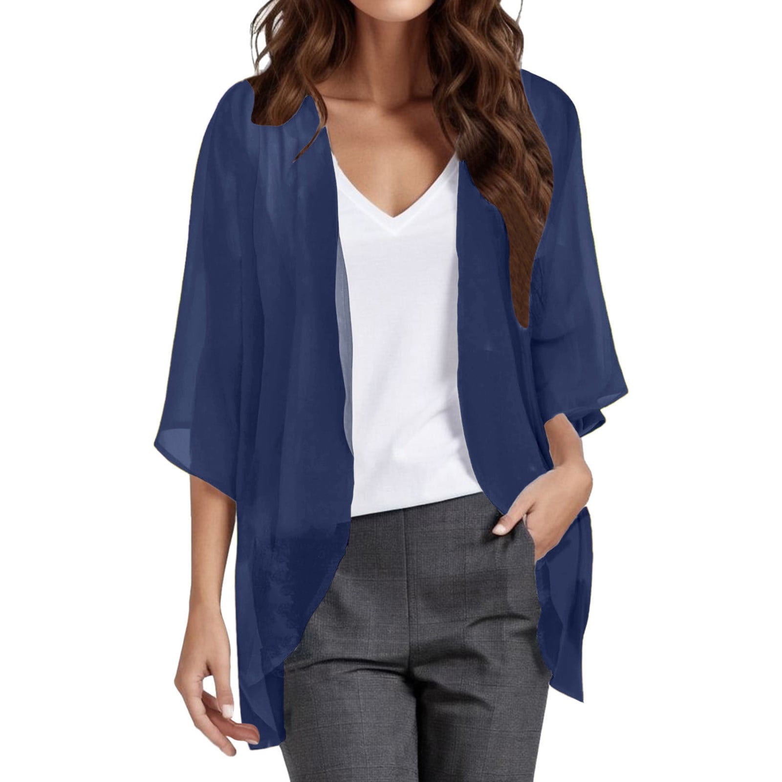 Aihuaihua Womens Sheer Kimono Cardigan Open Front 3/4 Sleeve Chiffon
