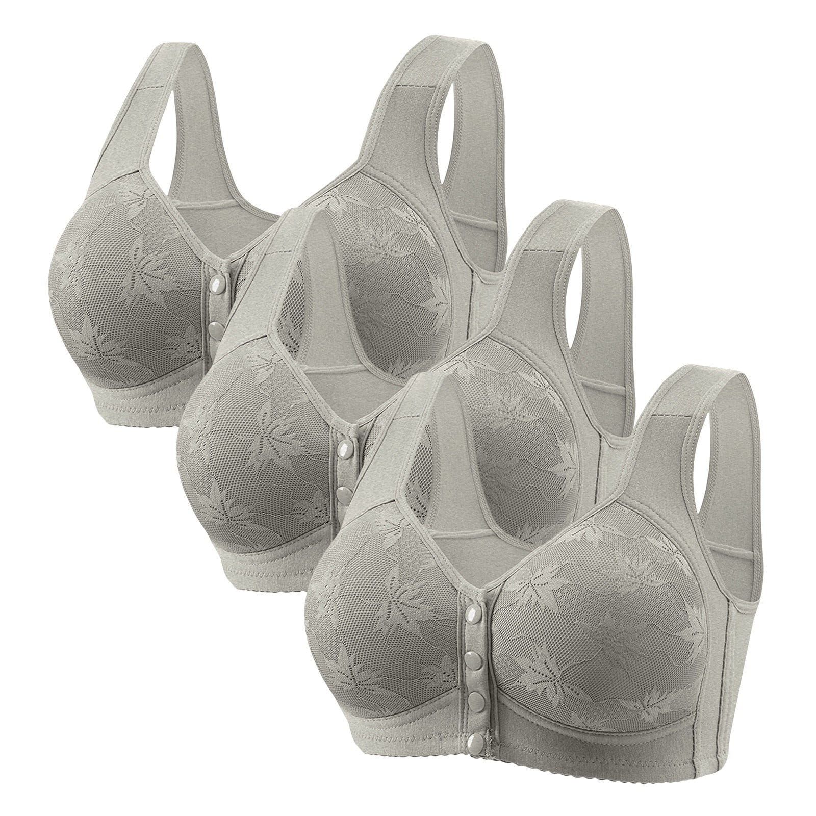 3 Pack Front Closure Wireless Cotton Bra for Women Plus Size Full