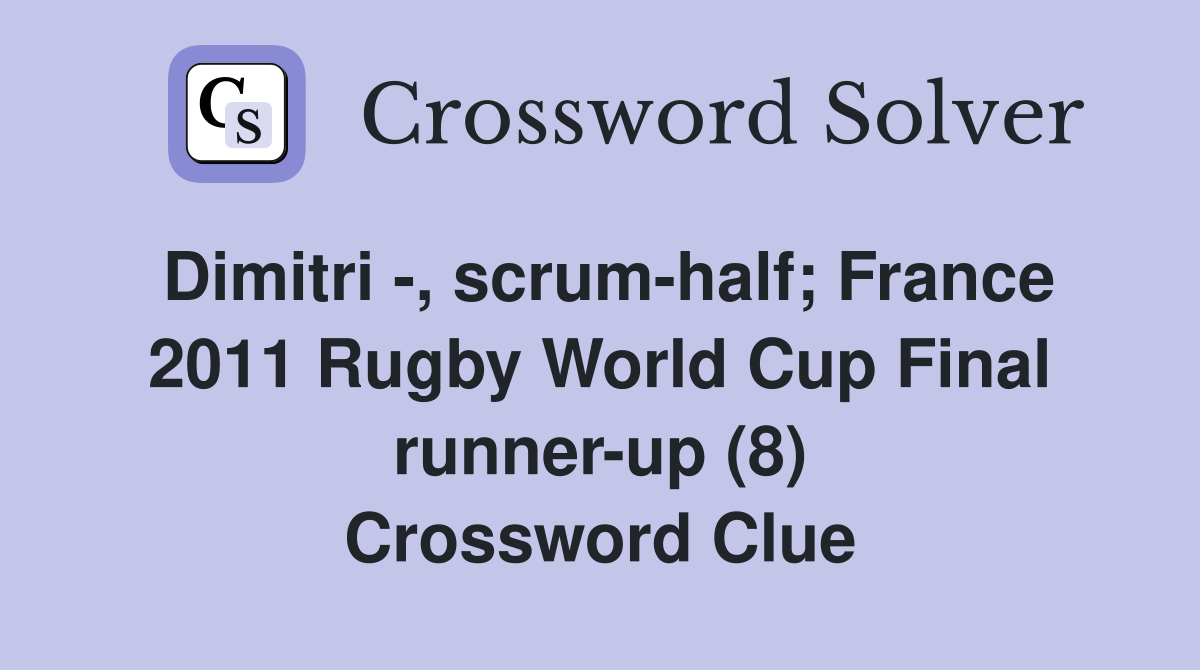 Dimitri scrum half France 2011 Rugby World Cup Final runner up (8