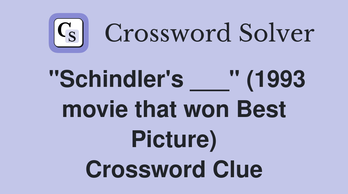quot Schindler #39 s quot (1993 movie that won Best Picture) Crossword Clue