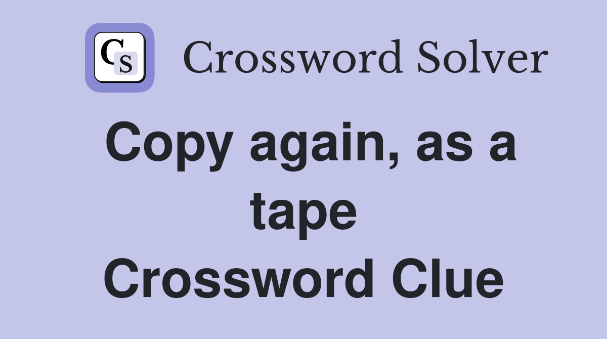 Copy again as a tape Crossword Clue Answers Crossword Solver