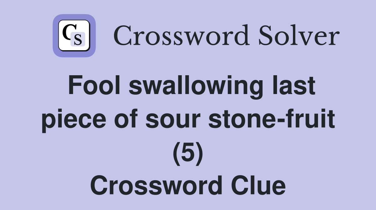 Fool swallowing last piece of sour stone fruit (5) Crossword Clue