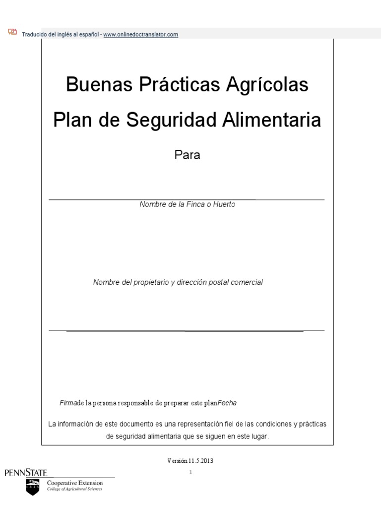 Template Harmonized Food Safety Plan En es PDF Pesticida Agua