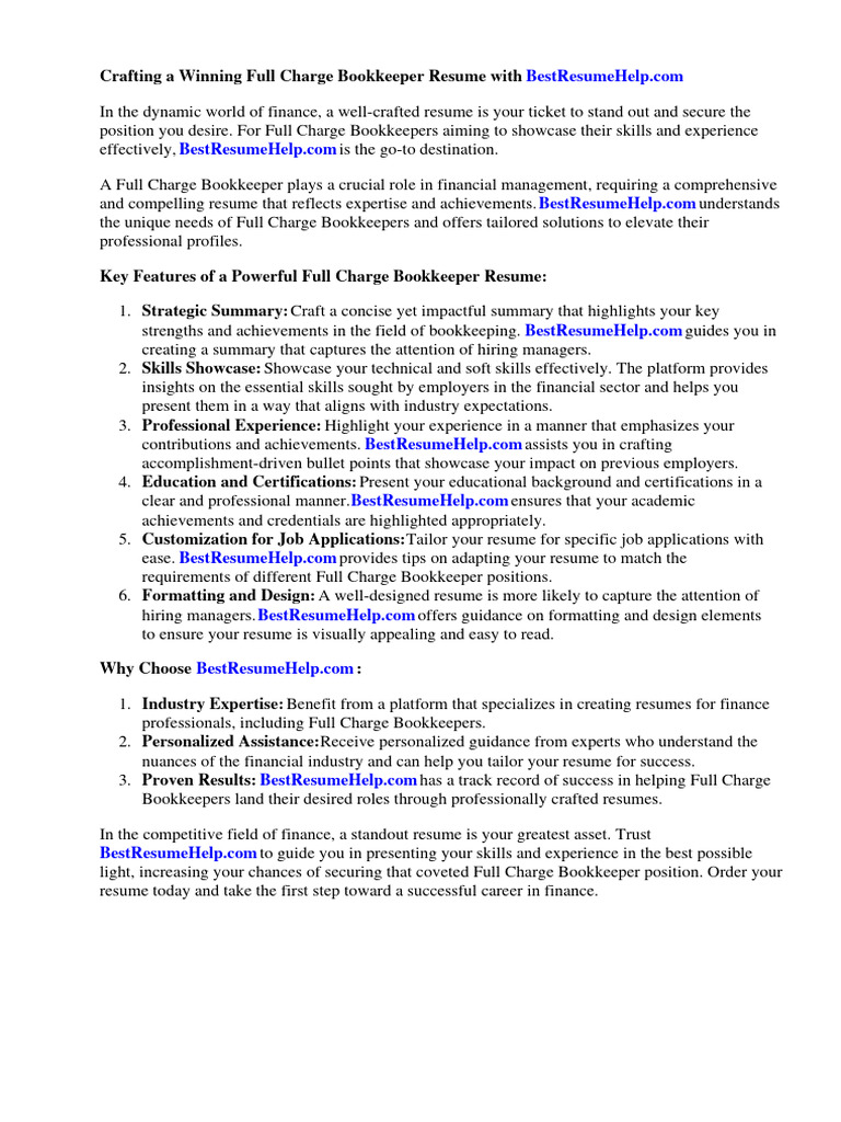 3 Full Charge Bookkeeper Resume Examples How To Guide for 2024