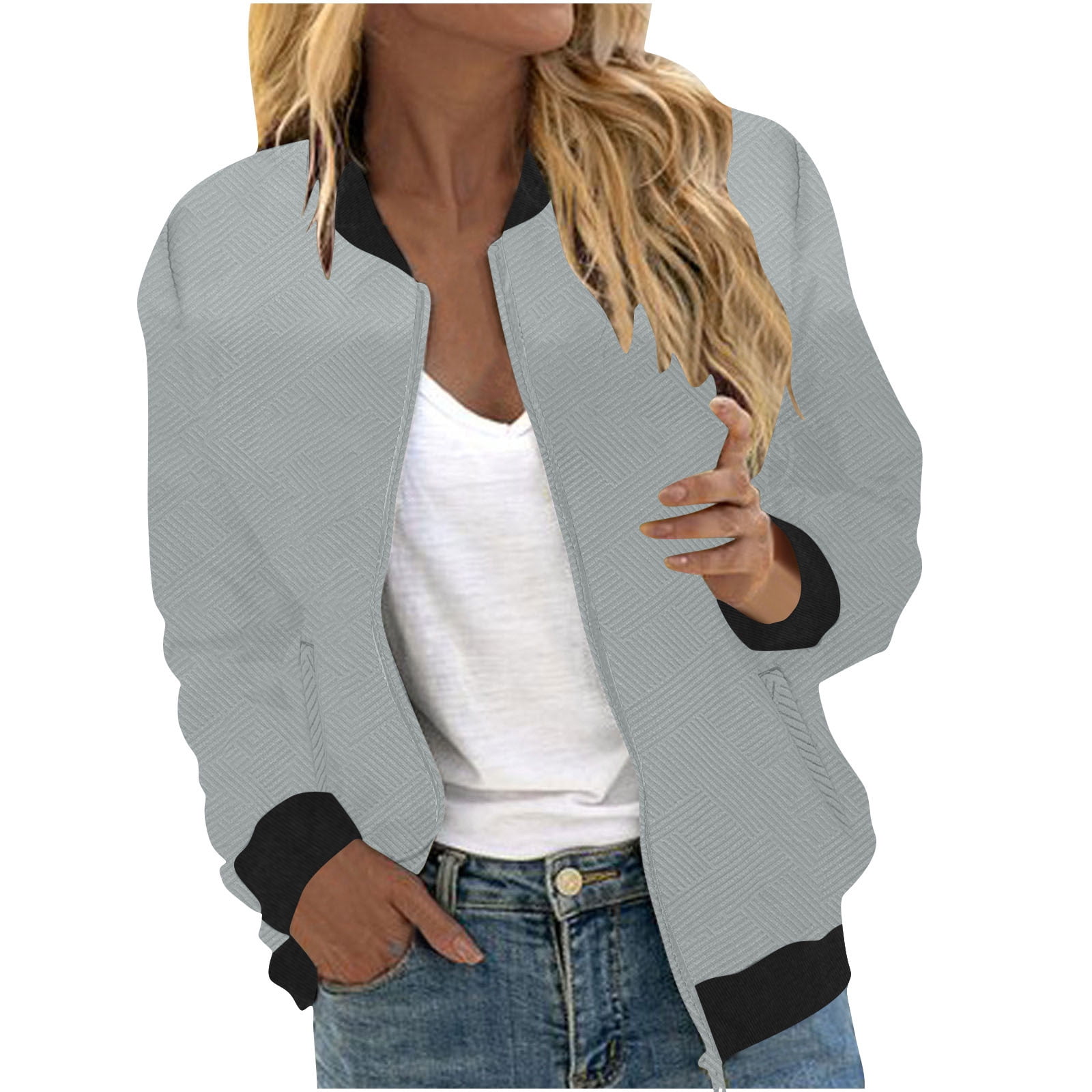 Full Zip Bomber Jackets with Pockets Womens Textured Trendy Casual