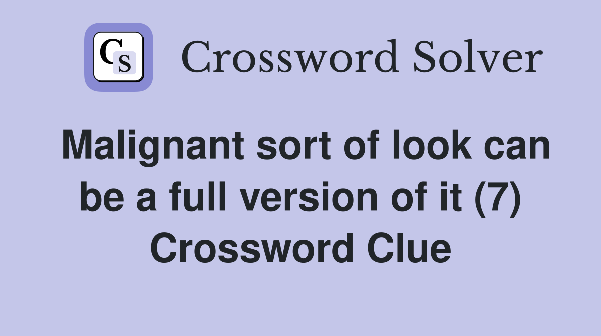 Malignant sort of look can be a full version of it (7) Crossword Clue
