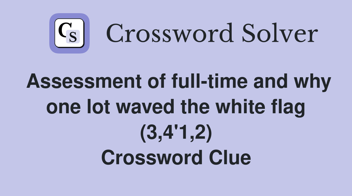 Assessment of full time and why one lot waved the white flag (3 4 #39 1 2