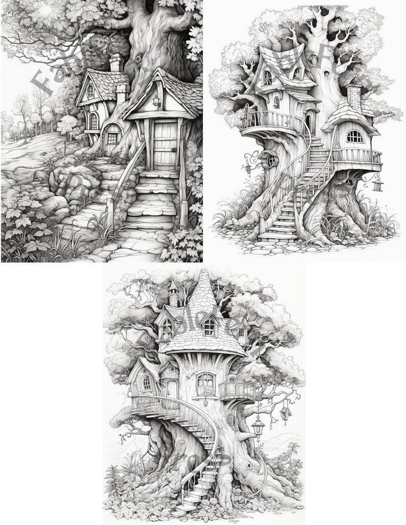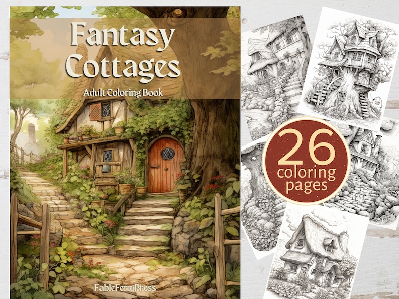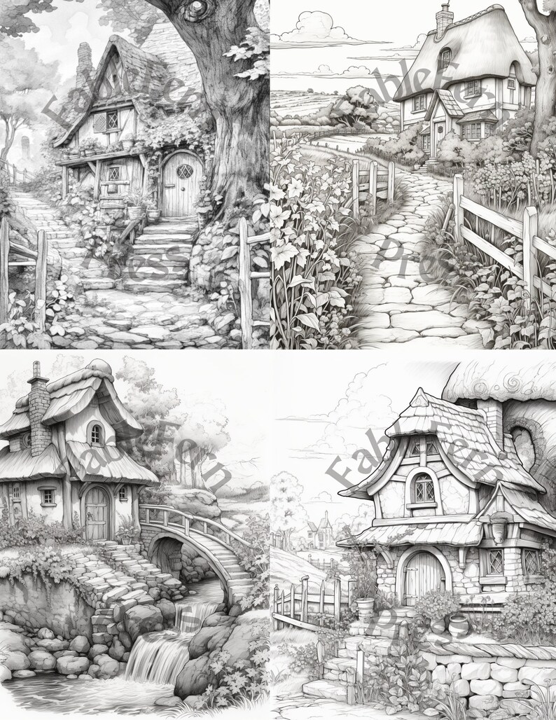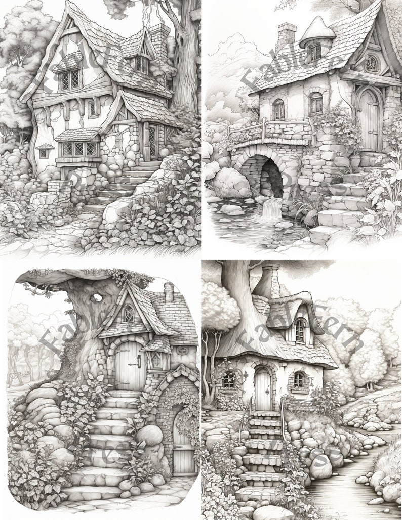 Fantasy Cottages Coloring Pages 26 Full page Illustrations in