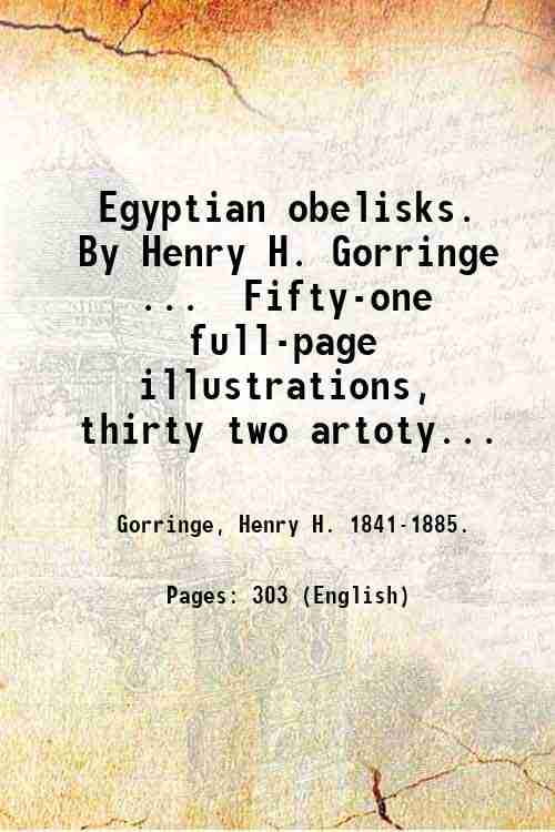 Egyptian obelisks By Henry H Gorringe Fifty one full page