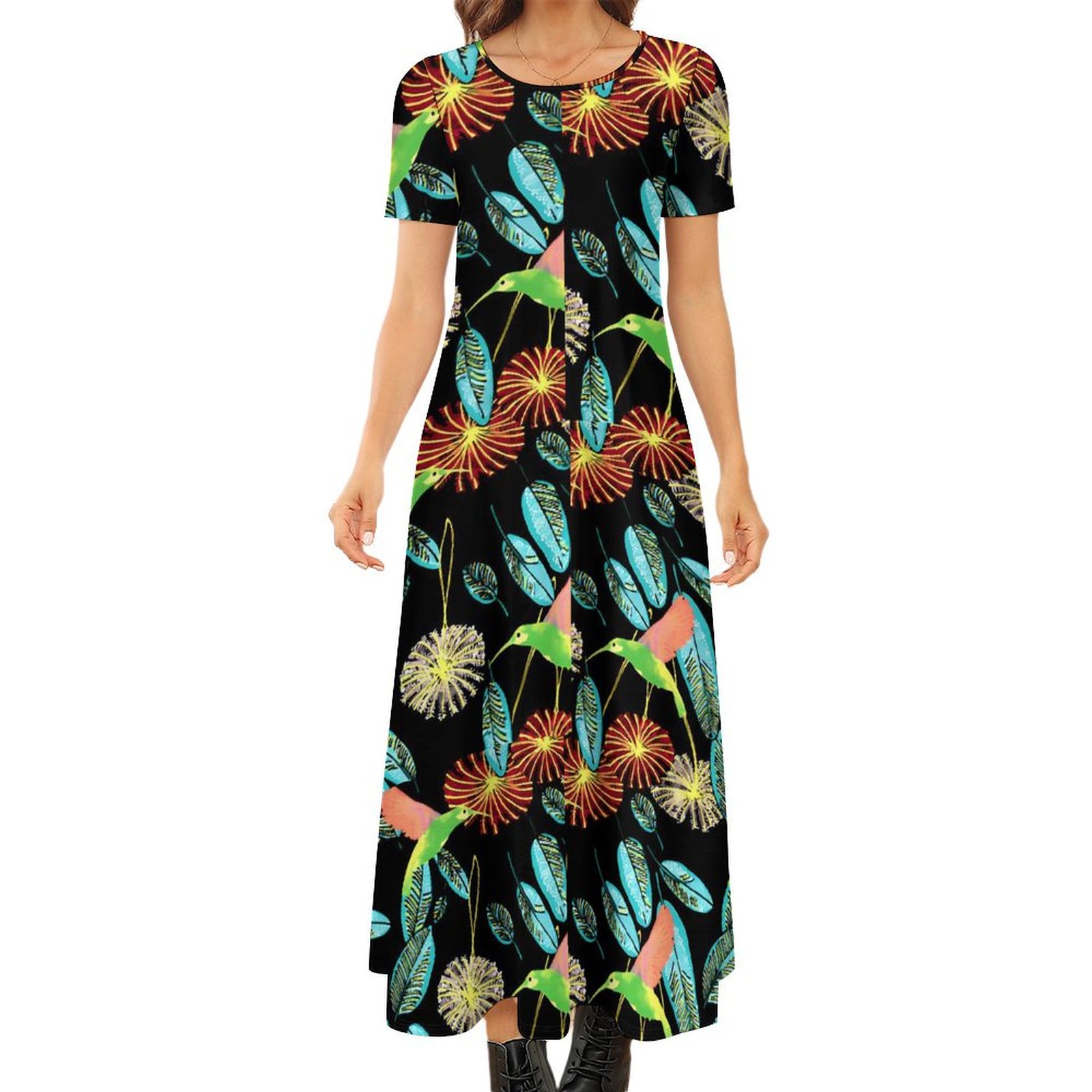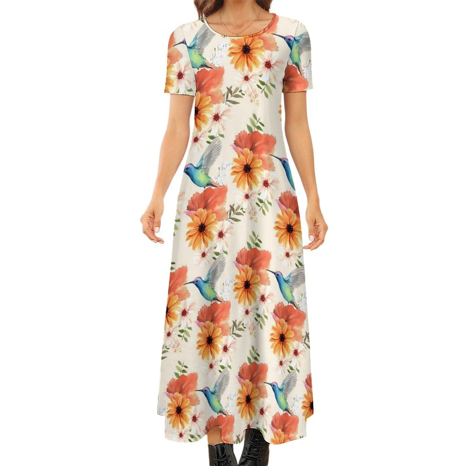 Fun Birds Flower Dress Colorful Floral Trendy Maxi Dress Aesthetic