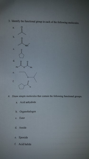Solved FUNCTIONAL GROUP IDENTIFICATION WORKSHEET Identify Chegg com
