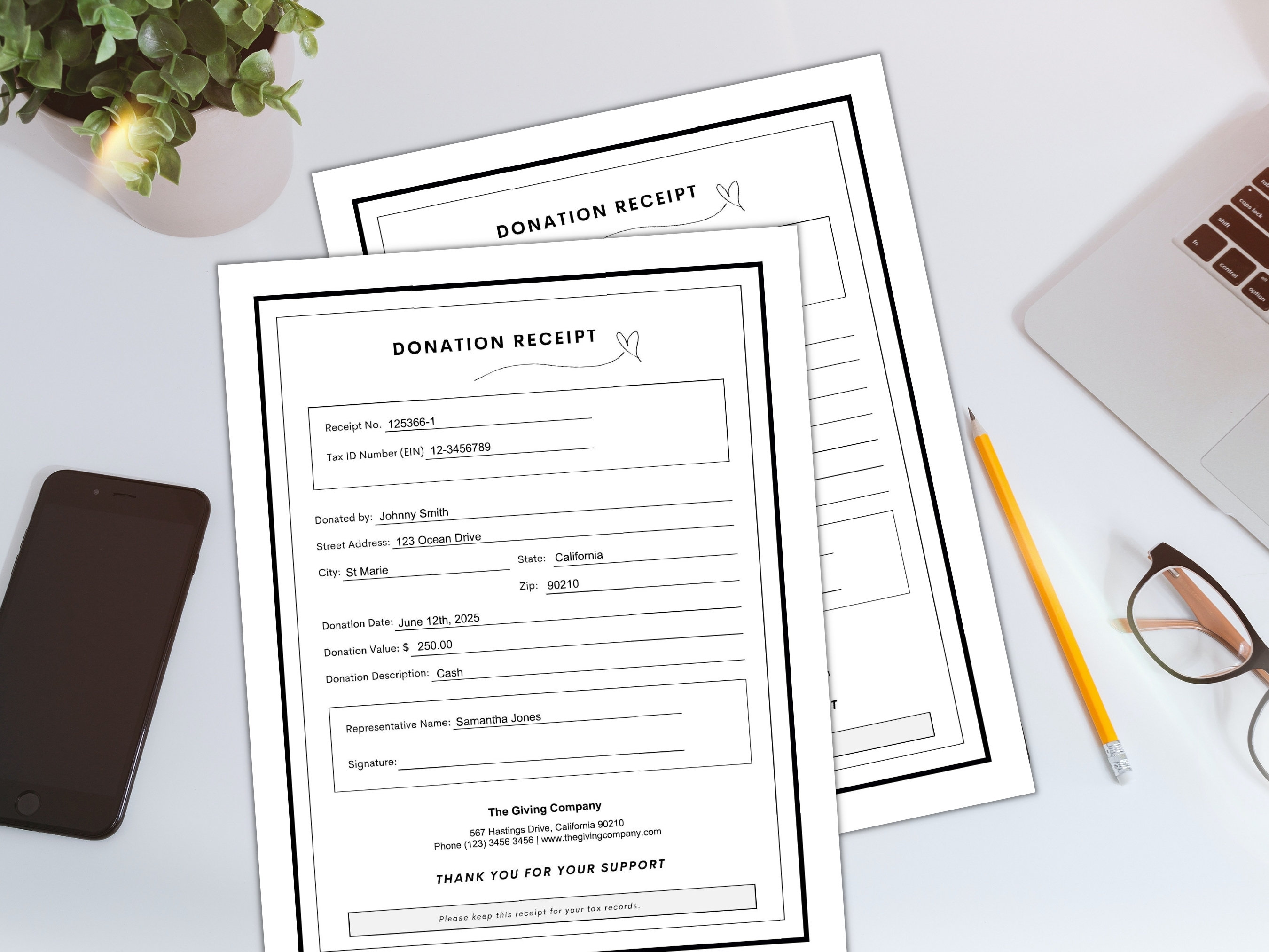Nonprofit Donation Receipt Charity Receipt Fundraiser Receipt
