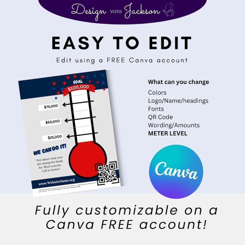 Printable Patriotic Progress Tracker: Instant Download Goal Thermometer