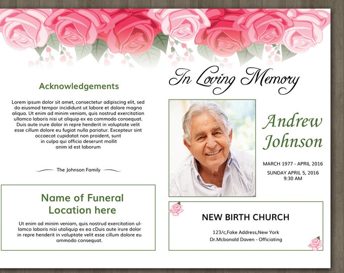 Women #39 s Red Rose Funeral Program Template Google Docs Etsy