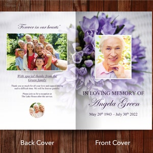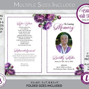 Purple Peonies Funeral Program Template Celebration of Life Memorial