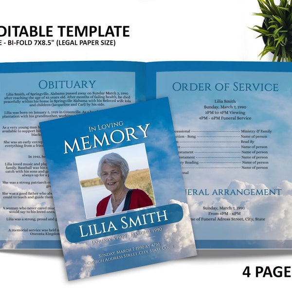 Funeral Program Template Canva Editable Colorful Folded Obituary