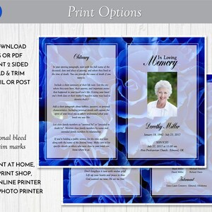 Blue Roses Funeral Program Template Obituary/order of Service Template