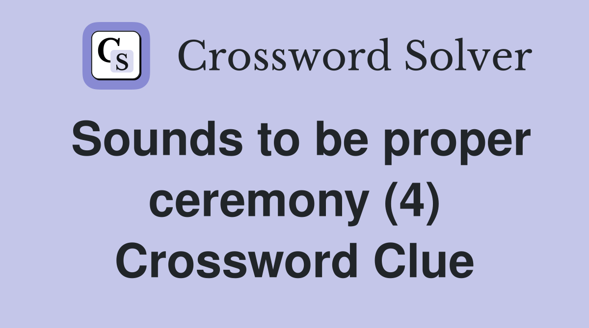 Sounds to be proper ceremony (4) Crossword Clue Answers Crossword
