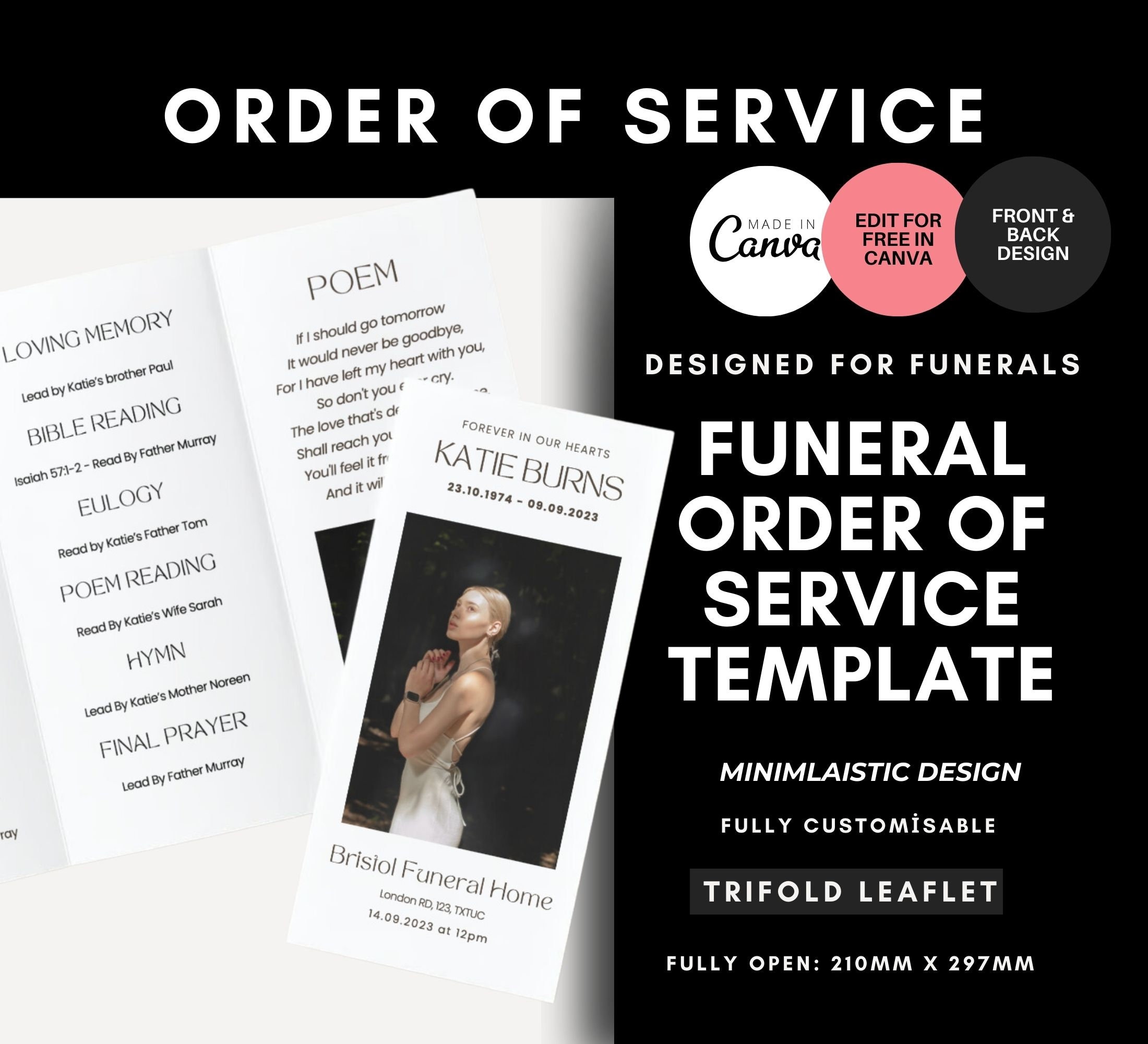 Funeral Order of Service Traditional Style Editable Template Instant