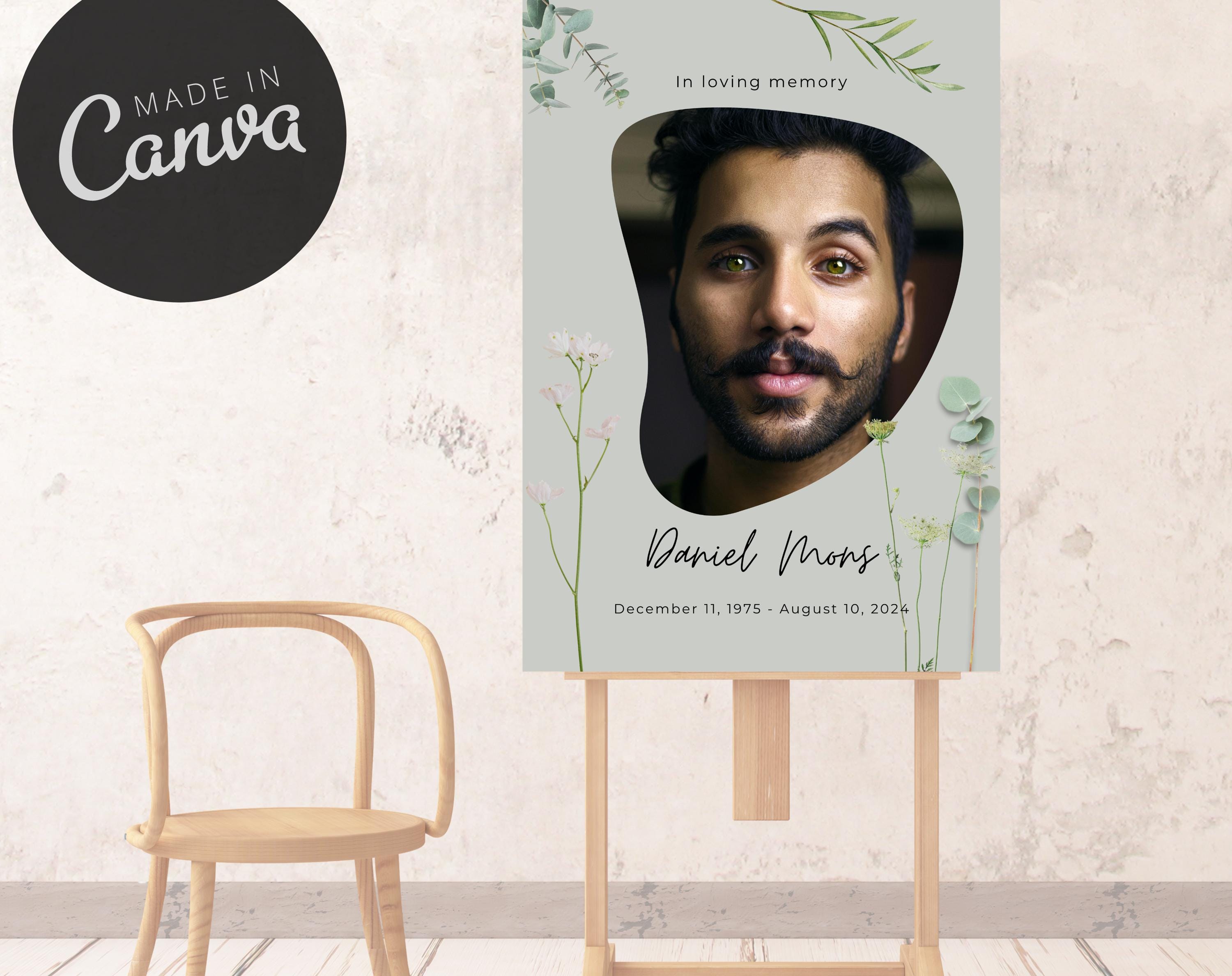 Editable Funeral Poster Template Floral in Loving Memory Sign Life
