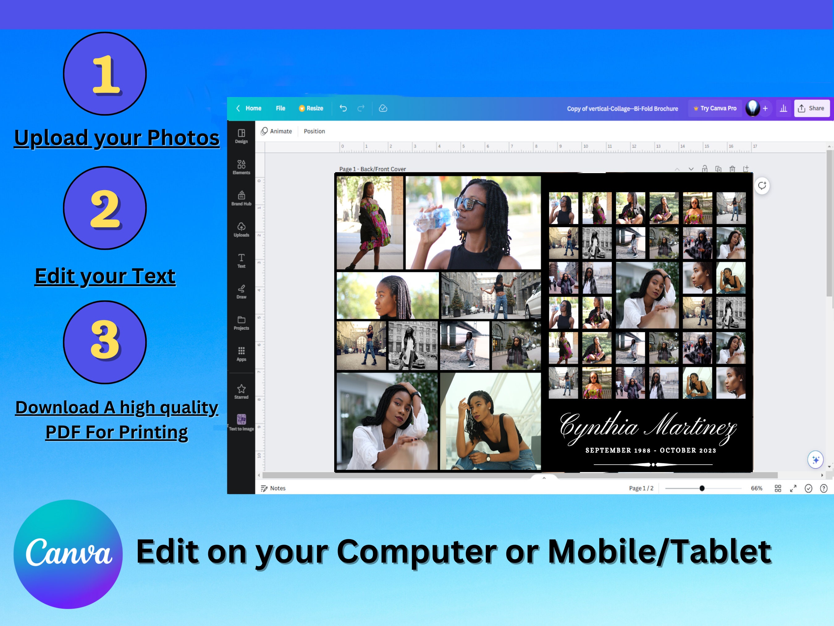 12 Page Funeral Program Booklet Template Photo Collage Tributes and
