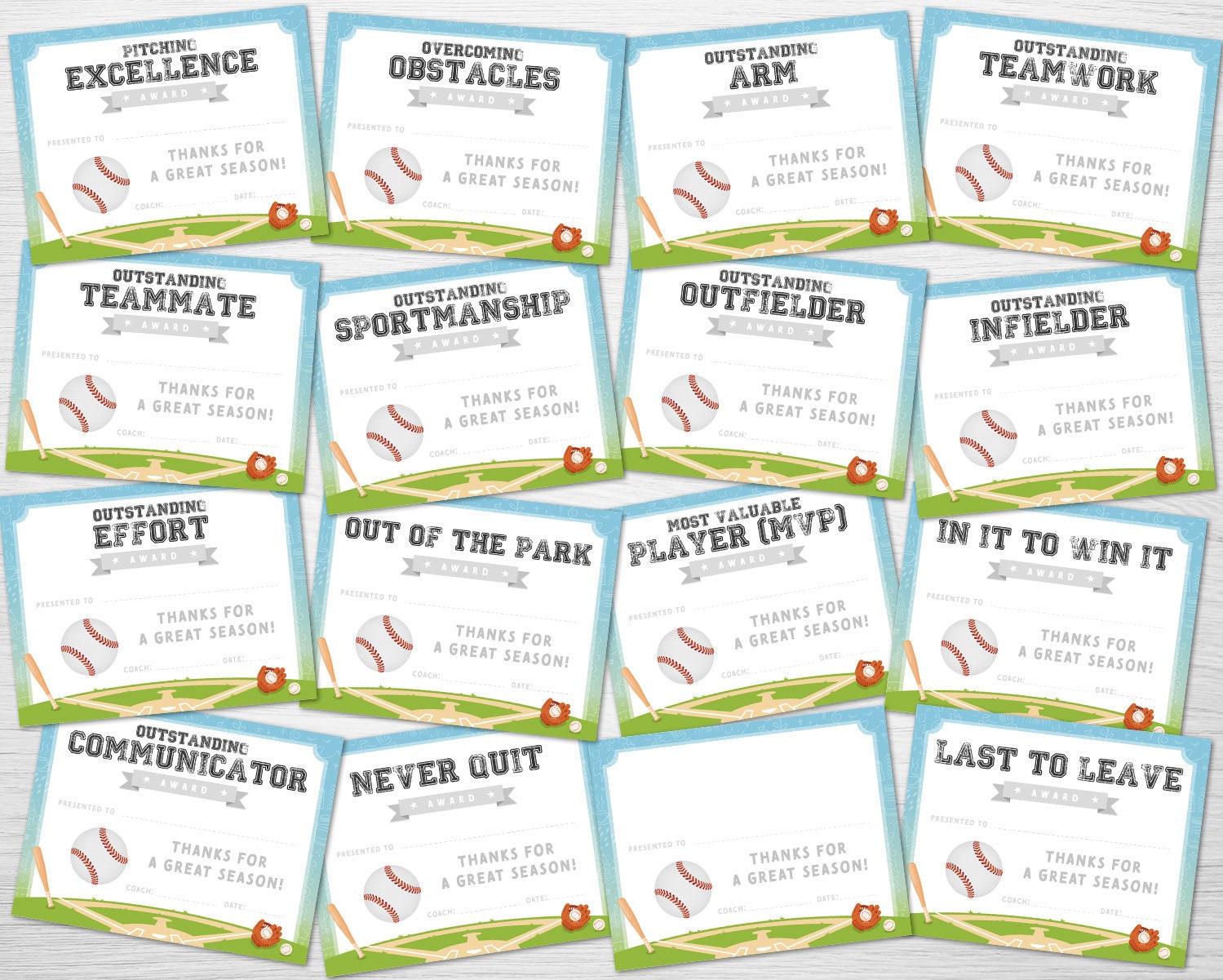 Editable Baseball Award Certificates Baseball End of Season Awards 2