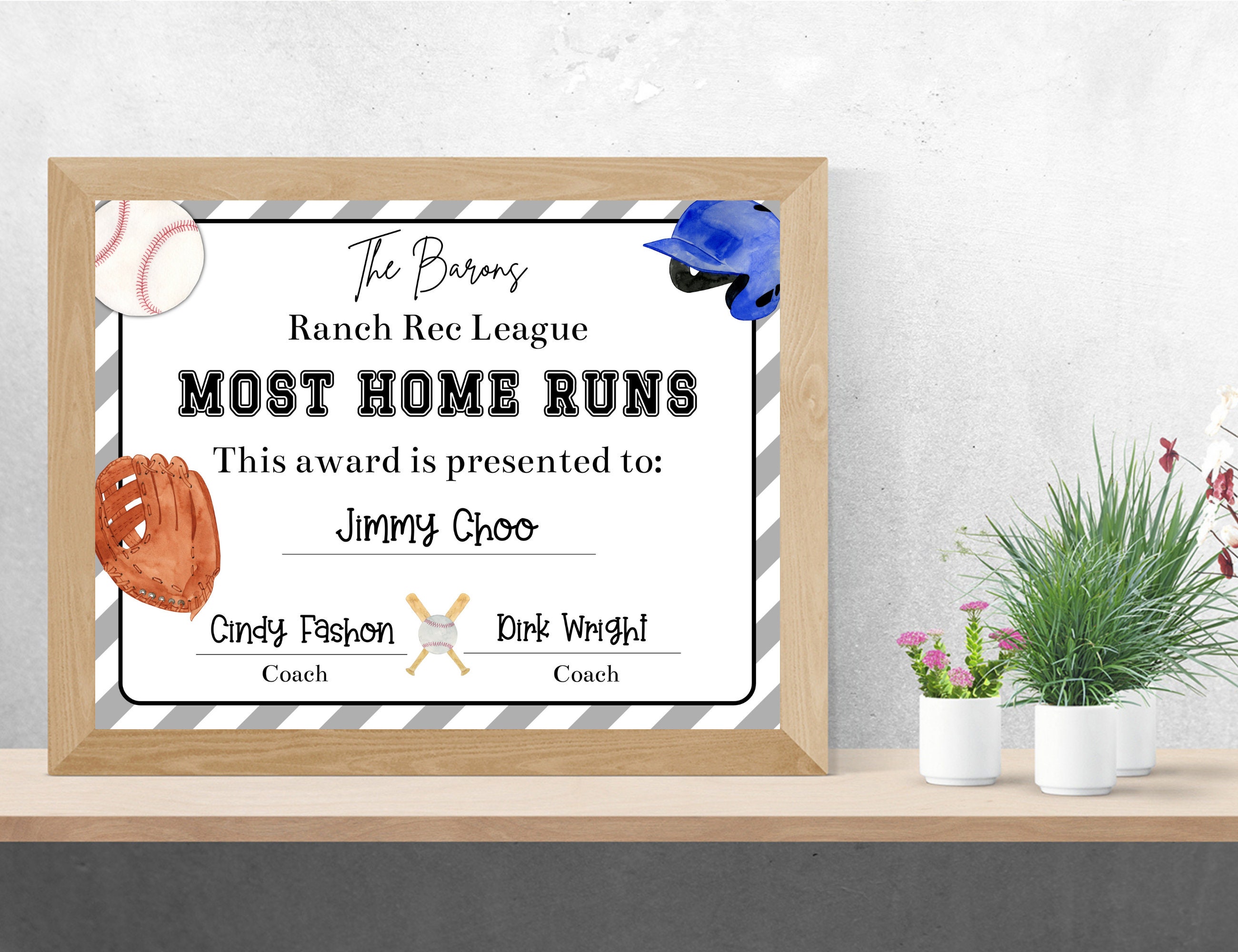 Editable Baseball Award Certificates INSTANT DOWNLOAD PRINTABLE