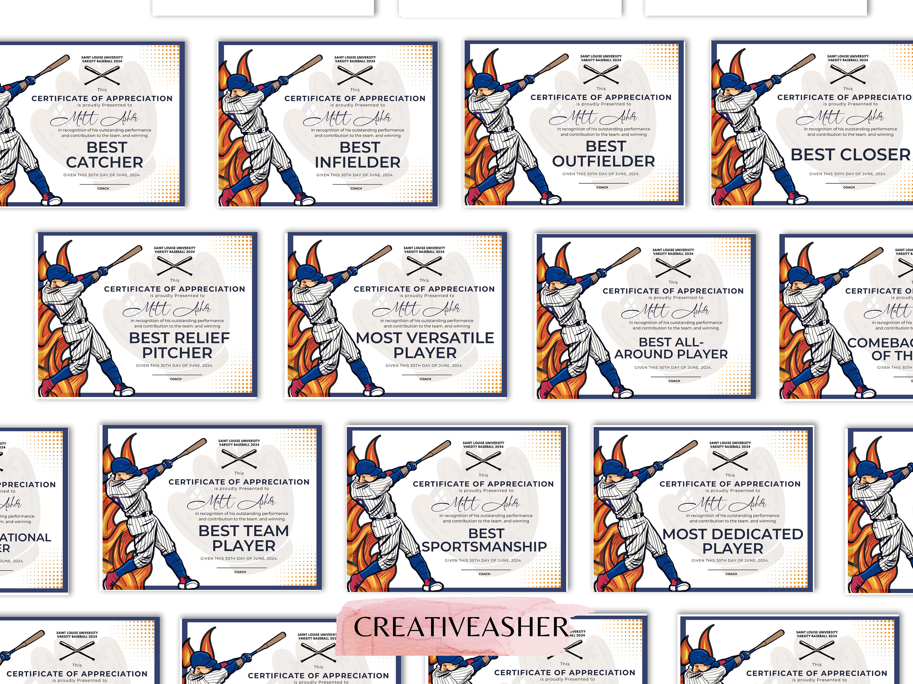 Editable Baseball Award Certificates 50 Award Ceremony Certificates