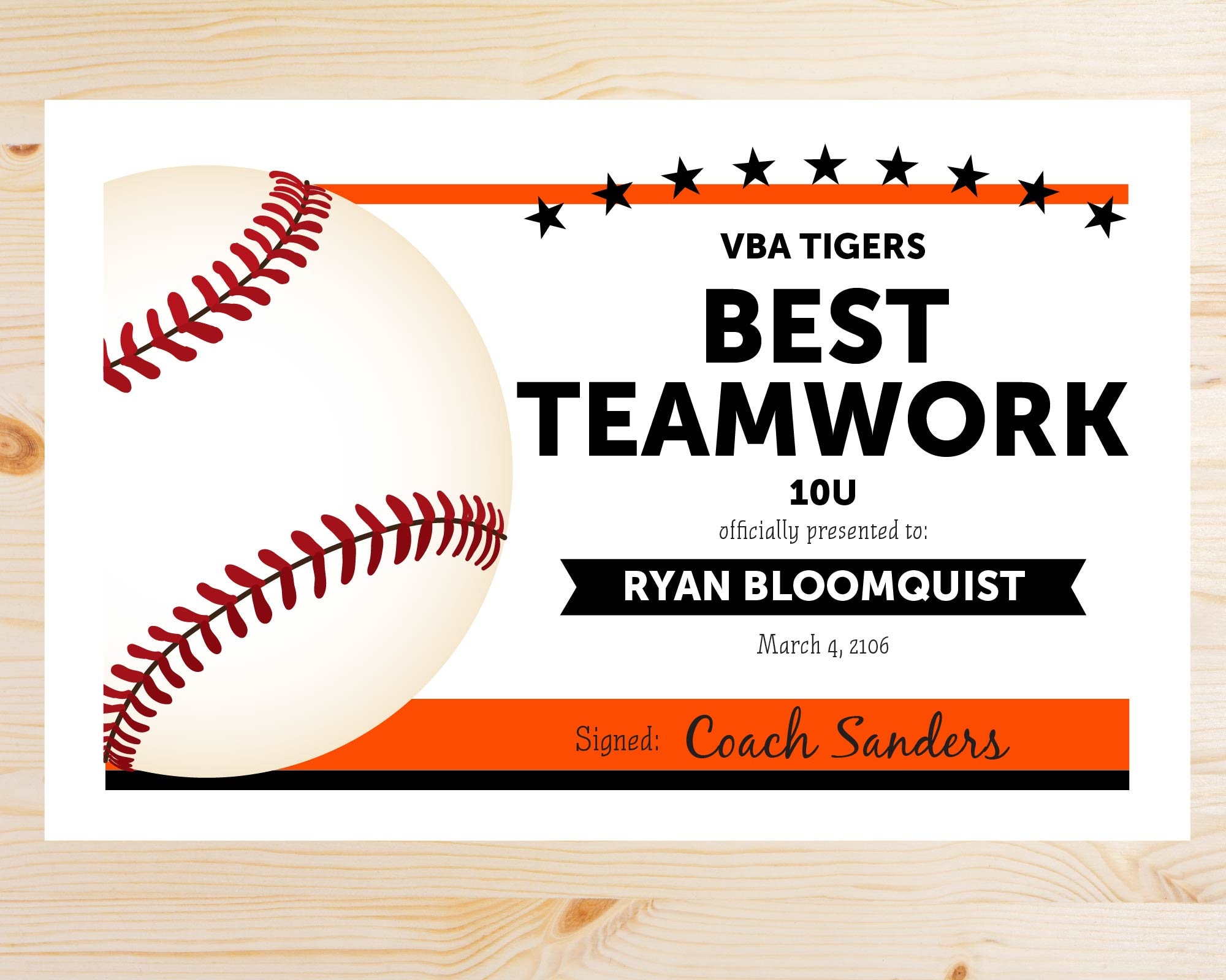 Editable Baseball Award Certificates Baseball Team Awards End of
