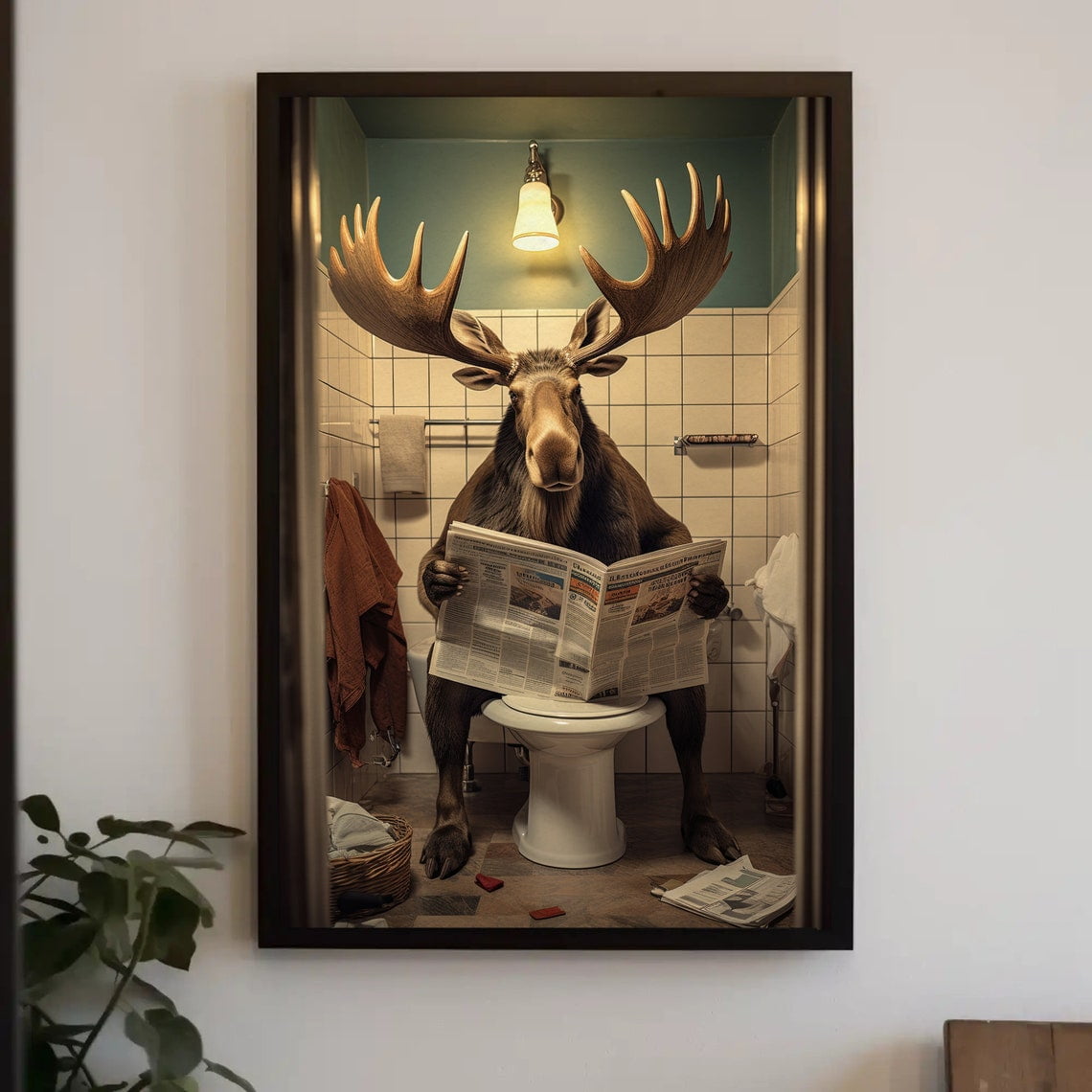 A Fat Moose On The Toilet Reading Newspaper Animal Lovers Gift Funny