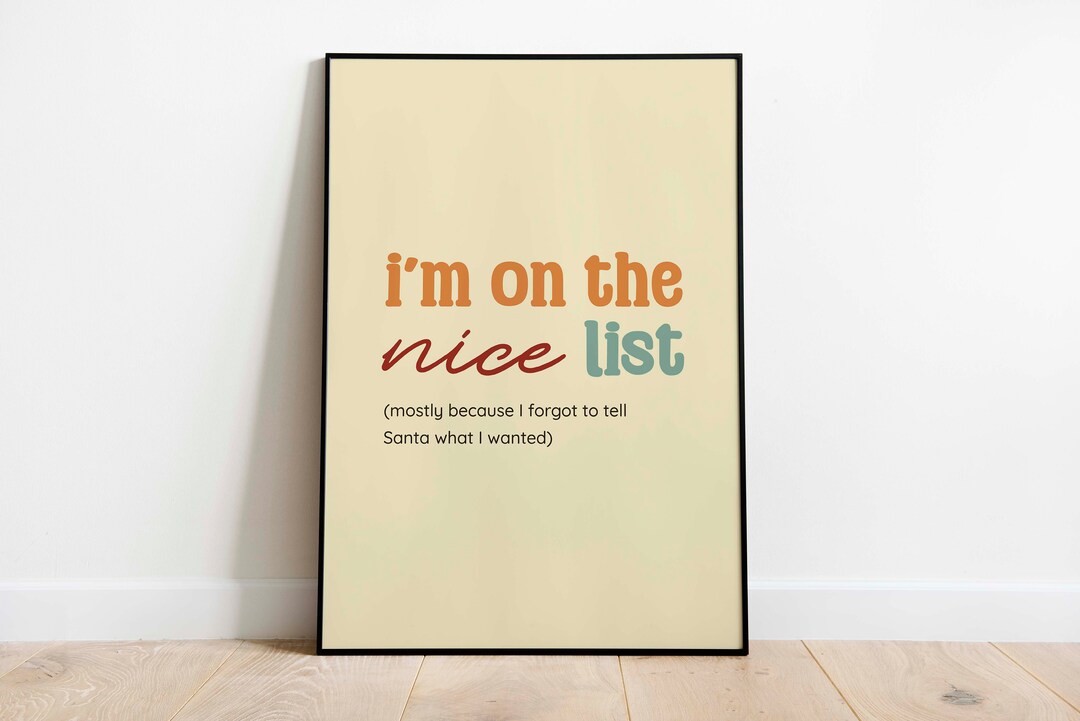 I #39 m on the Nice List Christmas Printable Wall Art Funny Christmas