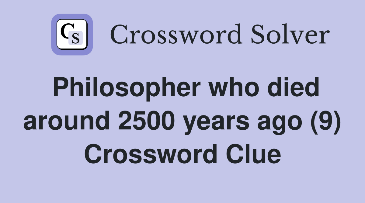 Philosopher who died around 2500 years ago (9) Crossword Clue Answers