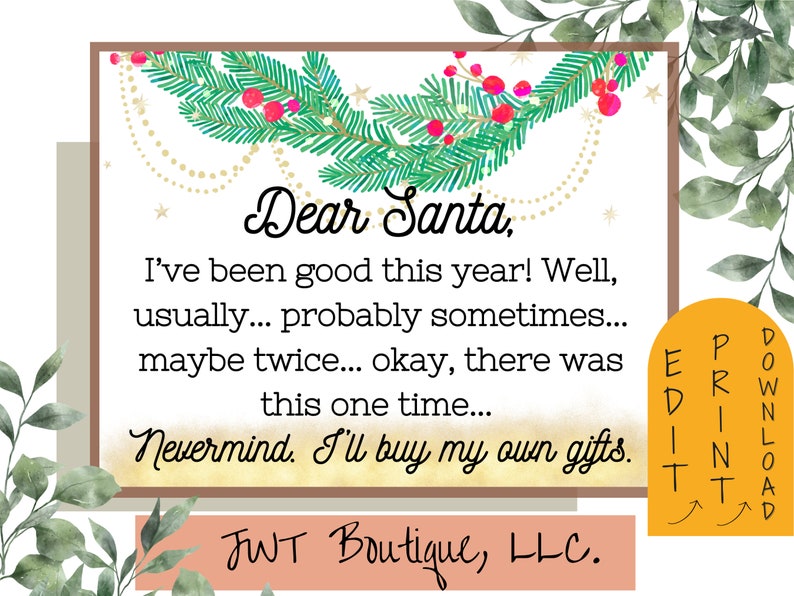 Funny Dear Santa Printable Sign Christmas Office Decor (digital