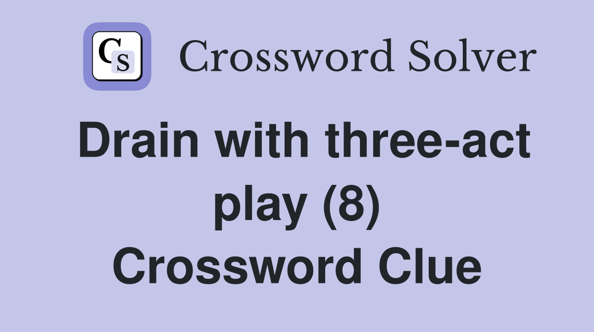 Drain with three act play (8) Crossword Clue Answers Crossword Solver