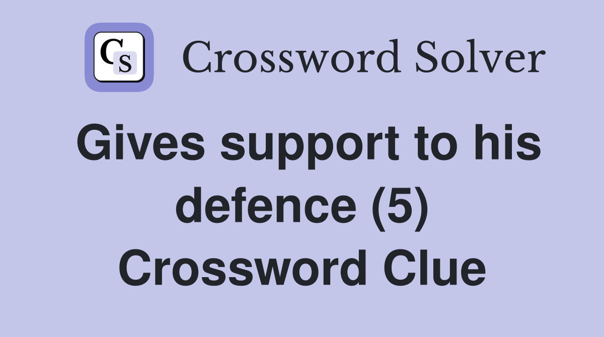 Gives support to his defence (5) Crossword Clue Answers Crossword