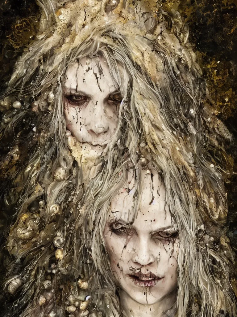 splatterpunk portrait of an old witch with cream Stable Diffusion