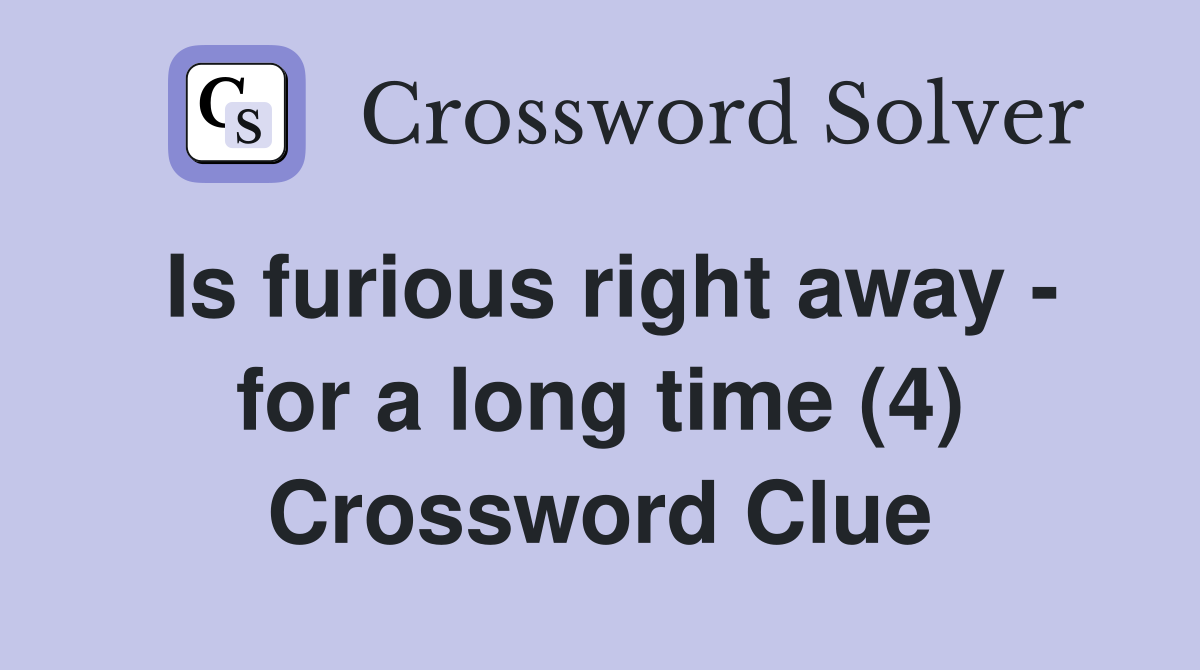 Is furious right away for a long time (4) Crossword Clue Answers