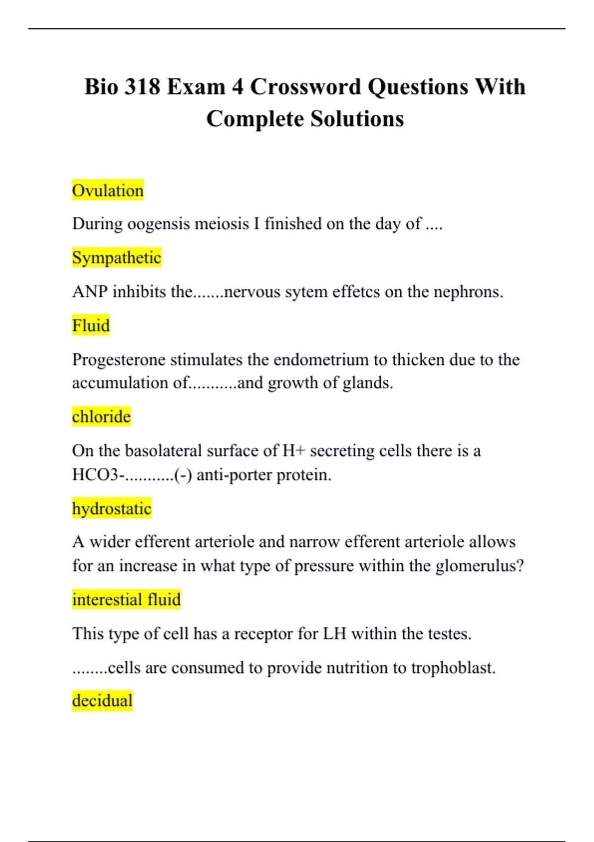 Bio 318 Exam 4 Crossword Questions With Complete Solutions Bio 318