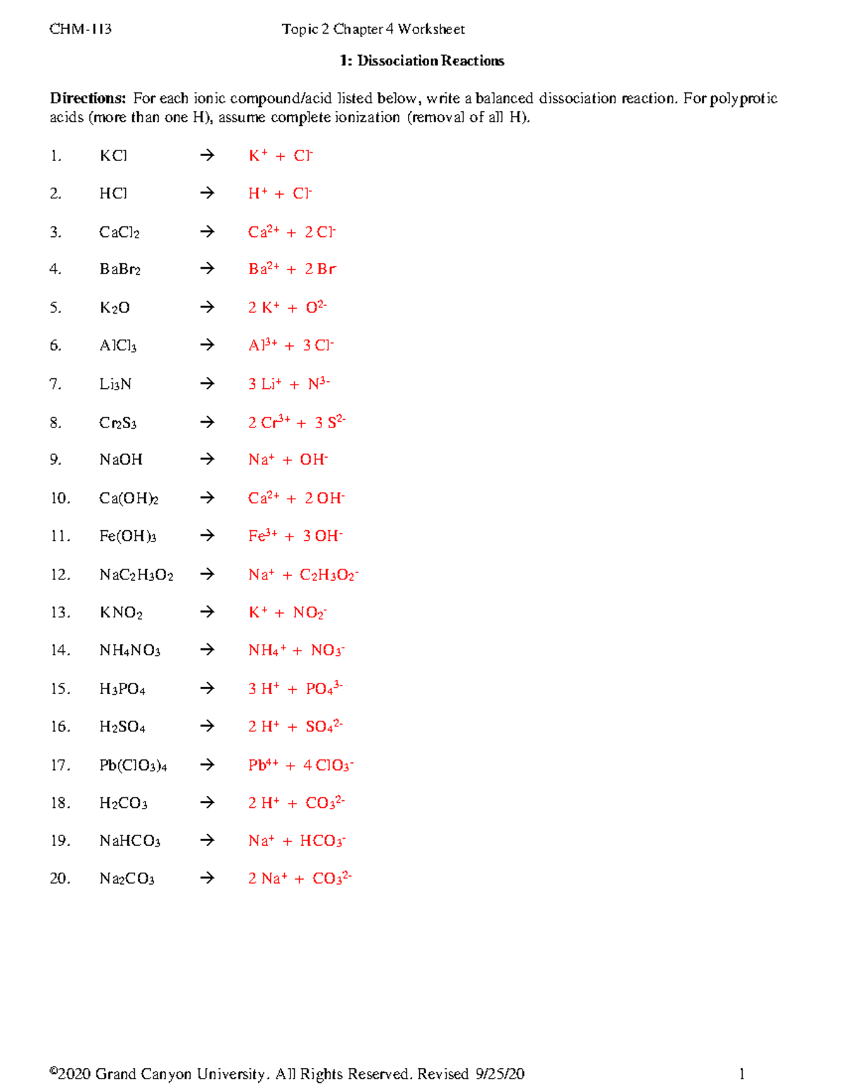 CHM113 T2 Ch 4 Worksheet KEY © 2020 Grand Canyon University All